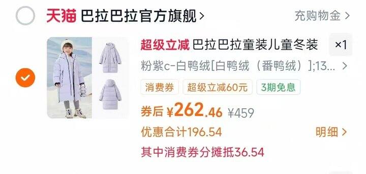 巴拉巴拉长款加厚羽绒服🚗