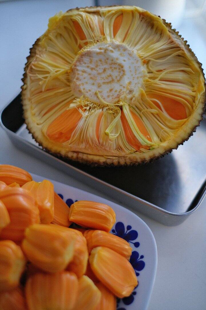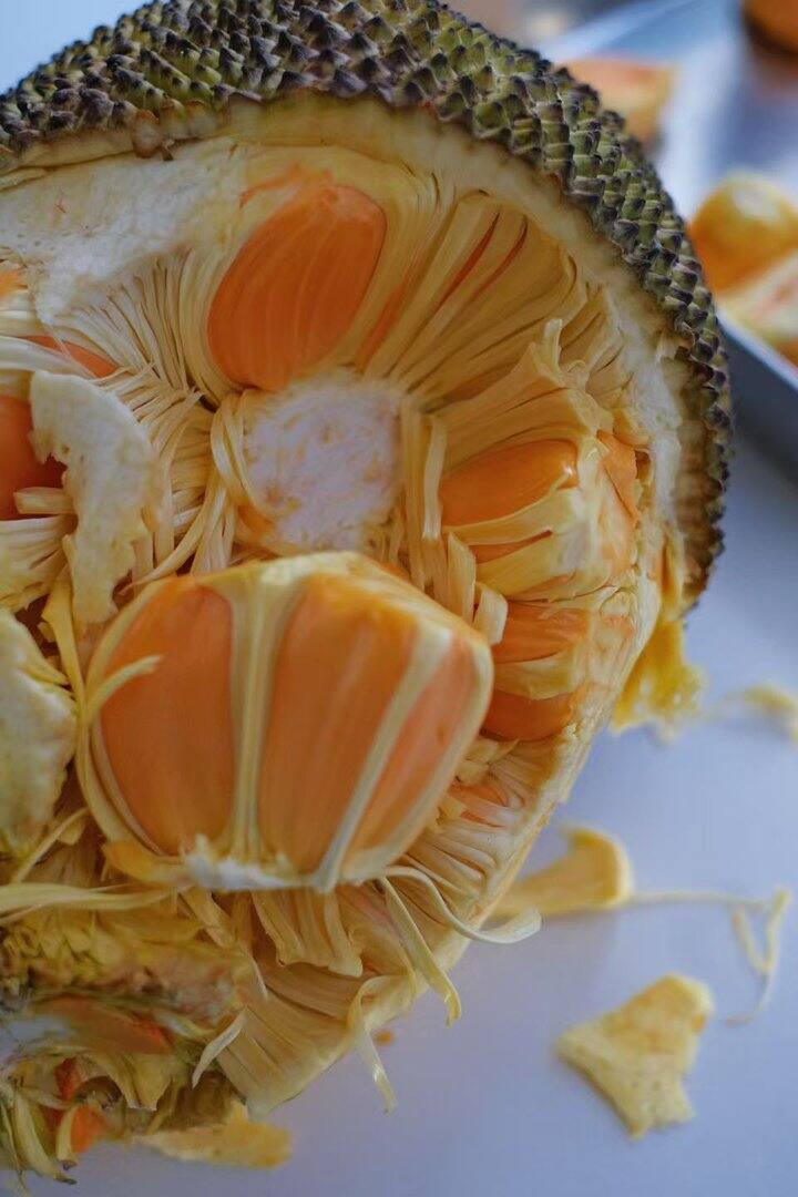 相比黄肉的菠萝蜜果肉颜色更惊艳,果肉更香更脆甜,特殊香气吃了会上瘾