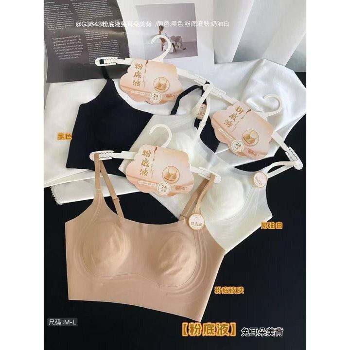 古妃3643粉底液无痕冰丝一字领抹胸内衣女超薄兔耳朵杯防走光裹胸