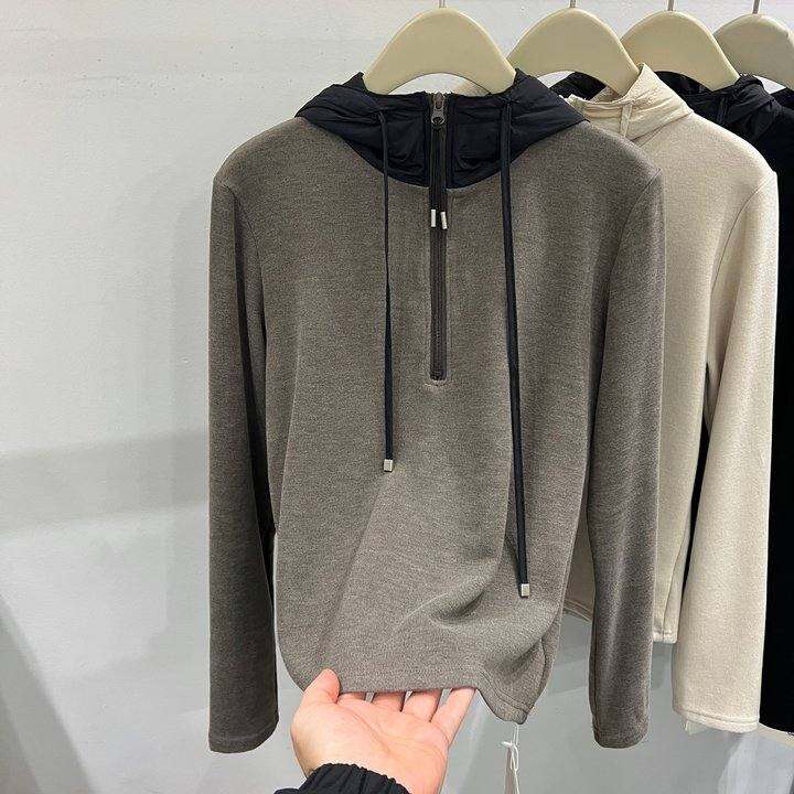 撞色拼接半拉链连帽双面德绒卫衣女秋冬款宽松休闲叠穿打底衫上衣