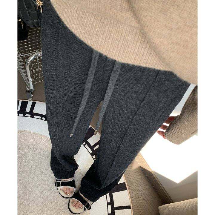 灰色羊毛呢直筒裤女秋冬新款加绒窄版垂感显瘦西装休闲阔腿长裤厚