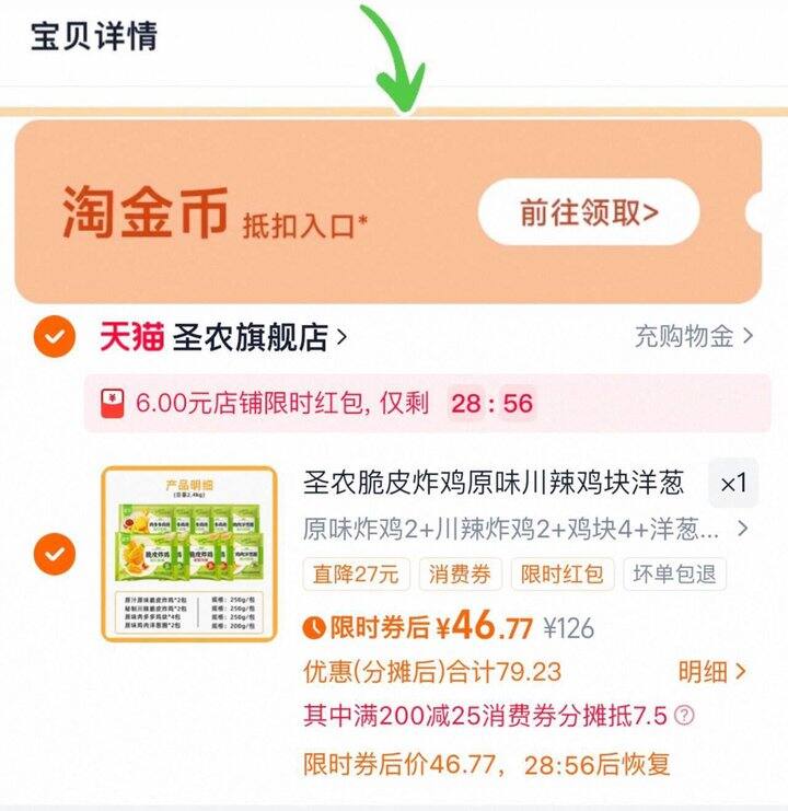 下拉点金'币',加1件【圣农】脆皮炸鸡10包共4.8斤