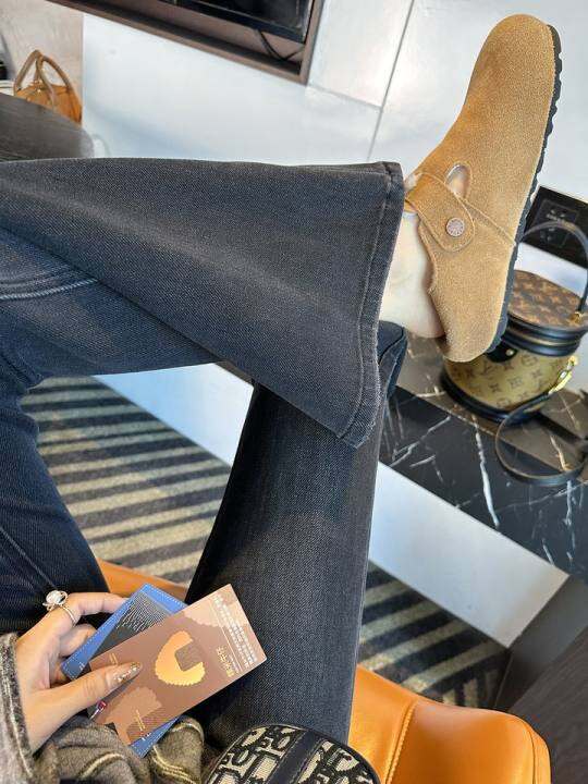 长腿压迫感!~黑灰色四面弹微喇叭牛仔裤女加绒高腰修身显瘦长裤