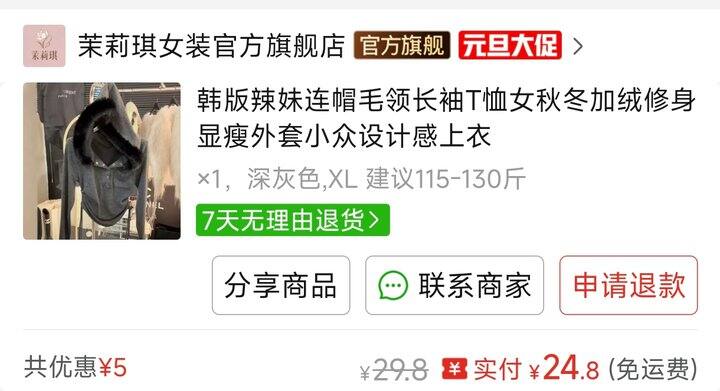 拼夕夕25元不到的加绒打底衫(辣妹款)