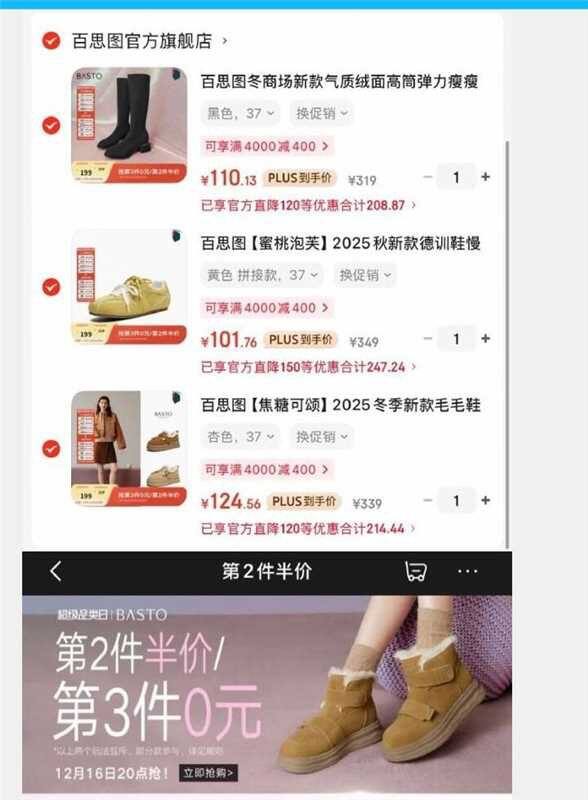 0点前下单享第三件0元活动,退差形式,退金额最小的一双,预计退后【234.7】