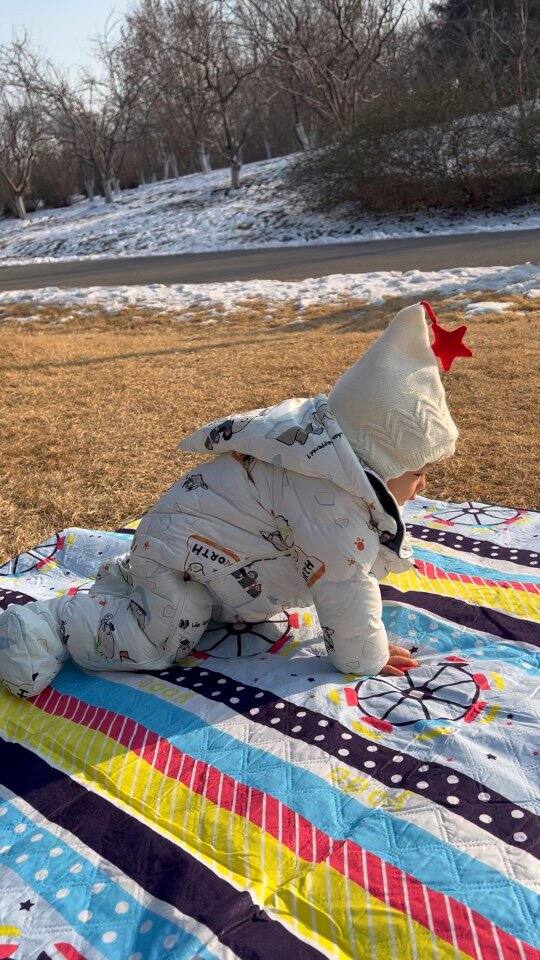 这周爷爷回老家一趟,我的育儿假年底要清零,所以请了假在家和奶奶一起带娃,也算是几天全职妈妈体验卡了,尊嘟很幸福。北方的冬天日照时间短,中午趁太阳不错,出门爬爬去了,顺便晒下这顶小帽子,好可爱嘿嘿