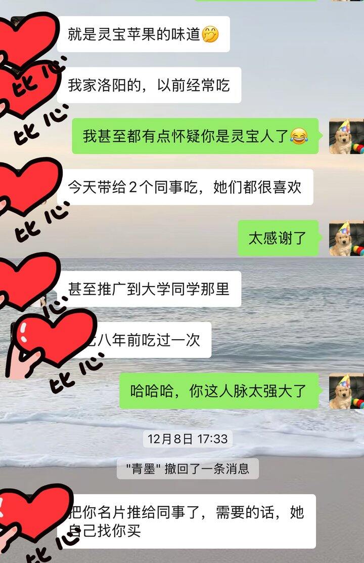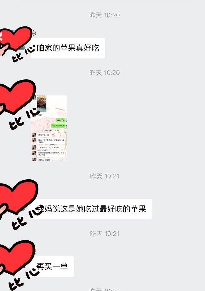 特别感谢下路口的姐妹,买过之后给身边的同事亲戚同学都推荐购买了我家的苹果。有的甚至回购了9箱,还有的姐妹送礼都是选的我家苹果。另外一个姐妹收到货开心的发抖音想要告诉全国各地爱吃苹果的吃货们来买我家苹果[苹果]