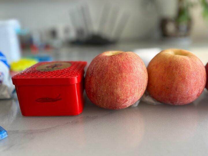 这里说下自家果园的苹果[苹果]产地河南灵宝,河南地区应该很多人都吃过灵宝苹果,口碑算是比较好的。不打蜡,不催熟,脆甜多汁,皮还薄。膜袋+纸袋,树下会铺上反光膜,折射太阳光,让苹果表面更光滑且颜色更好看,更好上色,这样的工序。今年10月份河南地区雨水丰富,苹果水裂纹很多,但是苹果水分也很足。建议姐妹们买回去的苹果尽量不要把外边的膜袋拆掉,等吃的时候再拆,放到冰箱更保鲜口感也会一直保持那个脆度。这是拆了外边的膜袋和没拆的的对比图,可能好看外貌全被膜袋遮住了,但是不影响好吃哦[馋嘴][馋嘴]