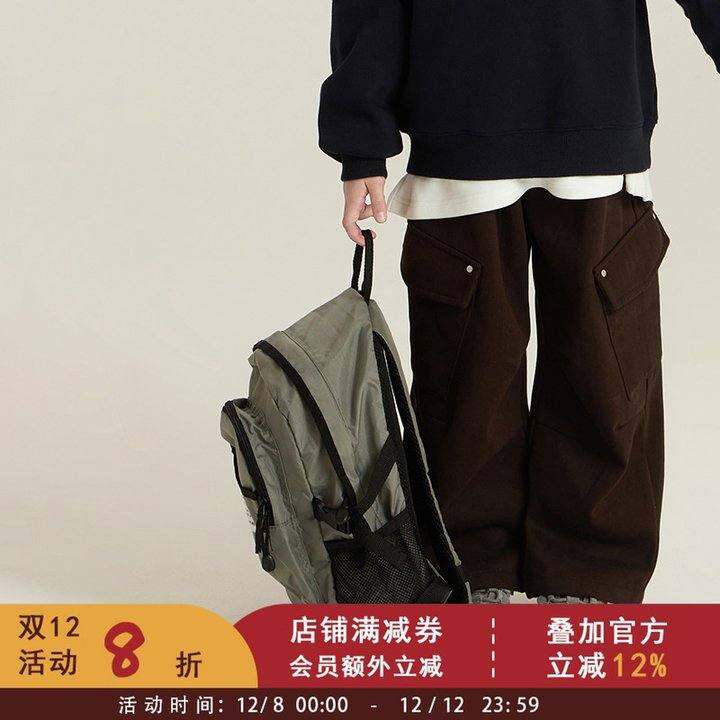 11.2 张..贝@原剪标 秋冬设计感磨毛阔腿格子裤女抽绳直筒休闲裤