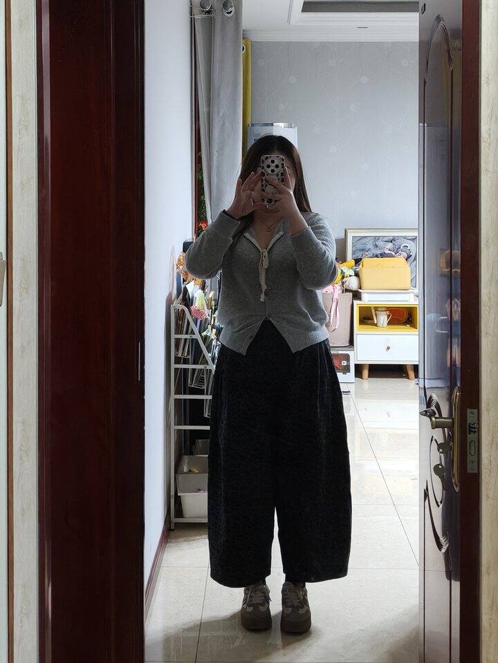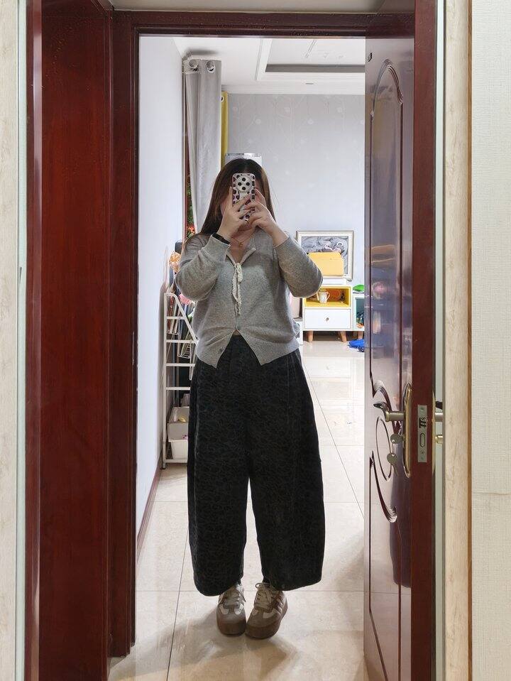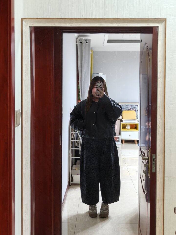 豹纹裤是前几天链接发的,也是流行的版型,很宽阔,会显得腿腕细一点,裤子我还挺满意的