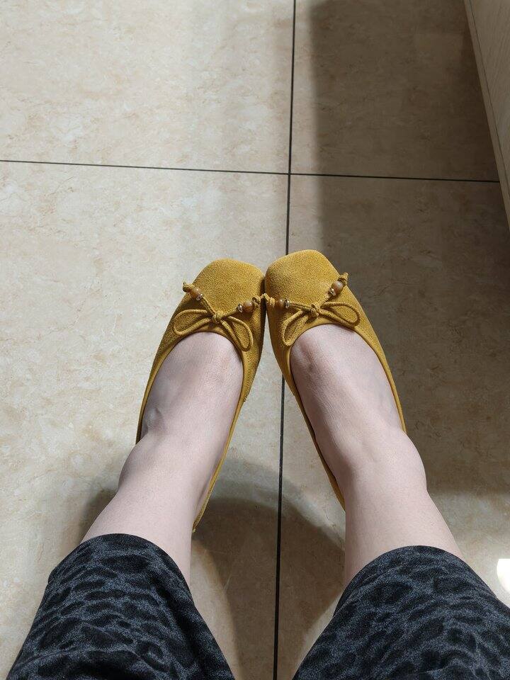 以及我微信买了双天美意的浅口鞋哈哈好喜欢这个颜色啊以及没想到我胖脚穿上一点也不挤脚很舒服