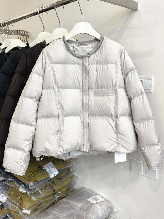 欧洲站2025冬季新款宽松时尚90白鸭绒轻薄圆领羽绒服女短款面包服