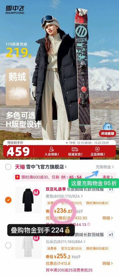 224💰雪中飞长款鹅绒服🚘❶領460-60消费券