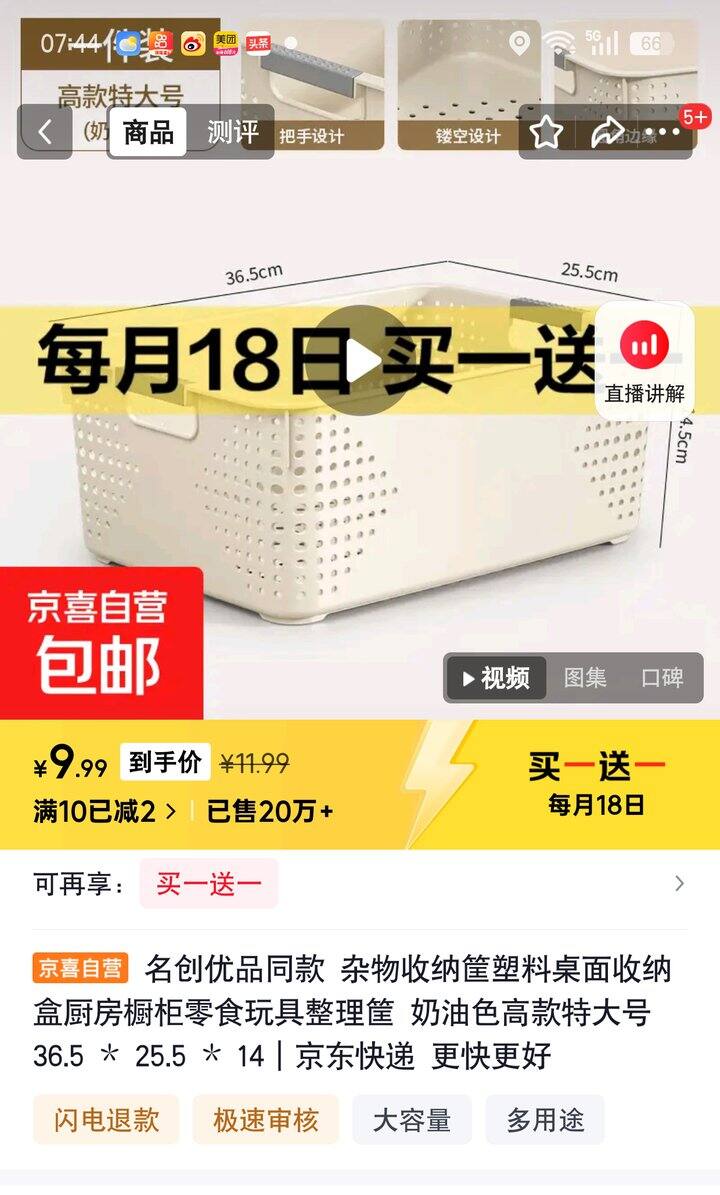 杂物收纳筐【9.99】(36.5*25.5*14)共2个