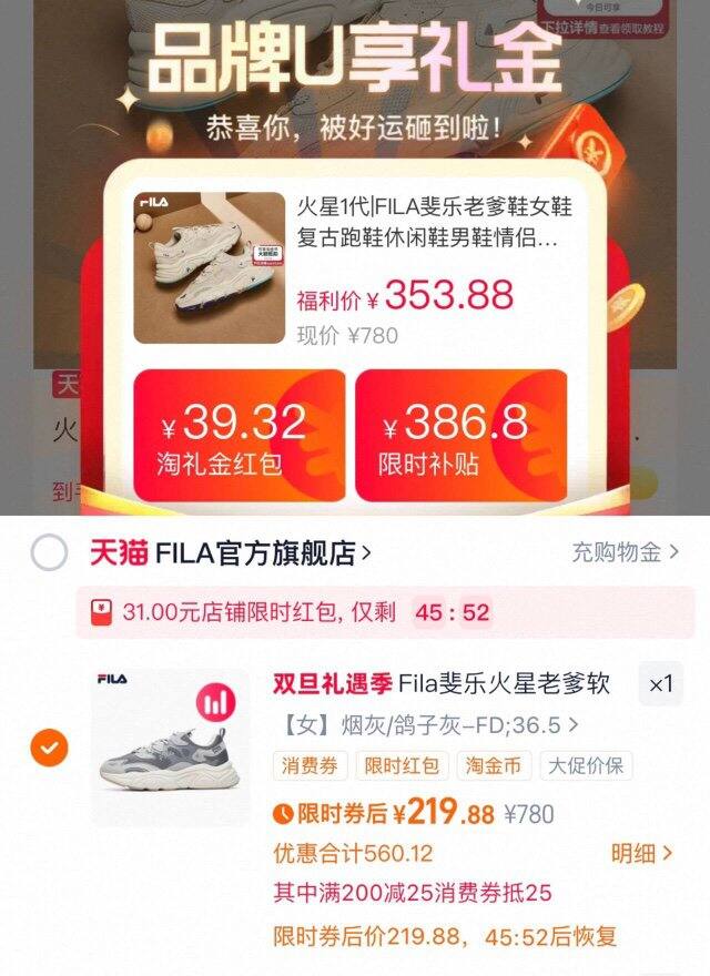 淘金币页面下单,有礼金,219元 斐乐火星1代丨运动鞋https://m.tb.cn/h.7Wp2hJD
