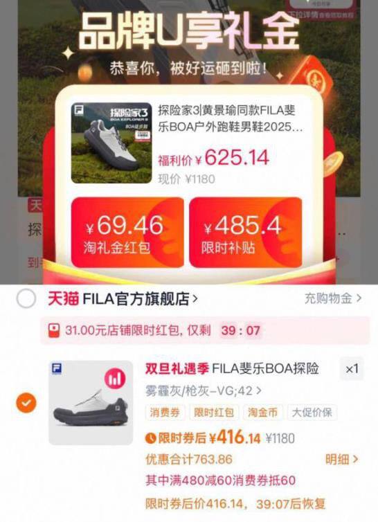 有礼金,416💰斐乐 探险家3黄景瑜同款跑鞋