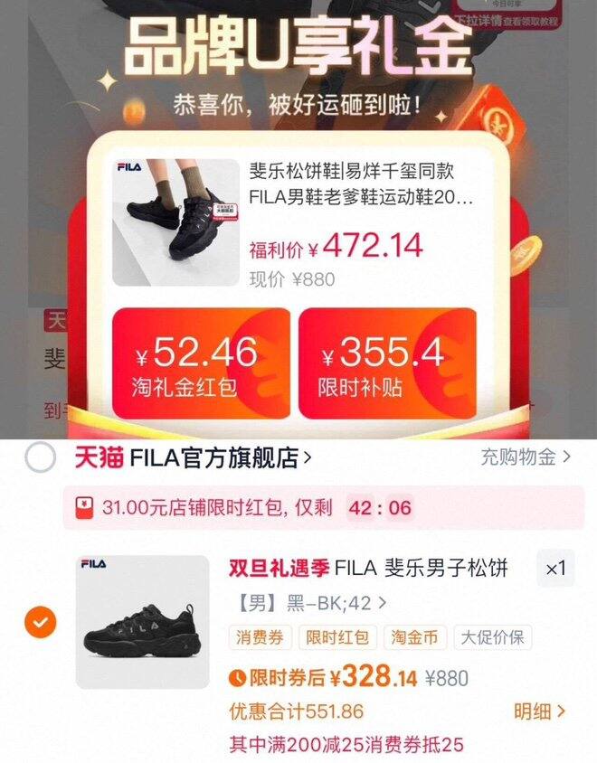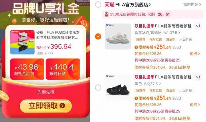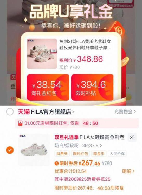 有礼金,251💰斐乐丨硬糖 老爹鞋增高厚底,用200-25消费券+金币88 https://m.tb.cn/h.7W4EwEi