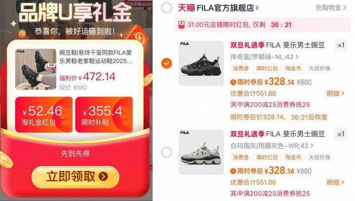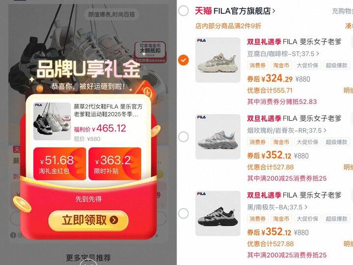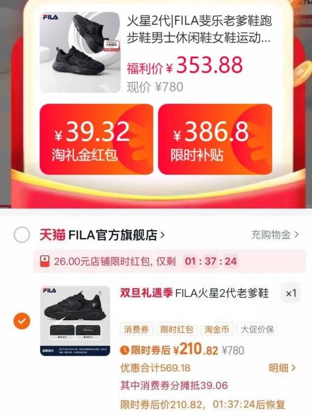 88vip领480-60消费券 https://m.tb.cn/h.7XzNMTA火星2代|FILA斐乐老爹鞋 领39.32礼金 淘金币加车https://m.tb.cn/h.7WyUFMO/