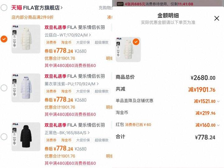 斐乐长歀情侣羽绒服💰778480-60消费卷+219元金币https://m.tb.cn/h.7WIq6pI