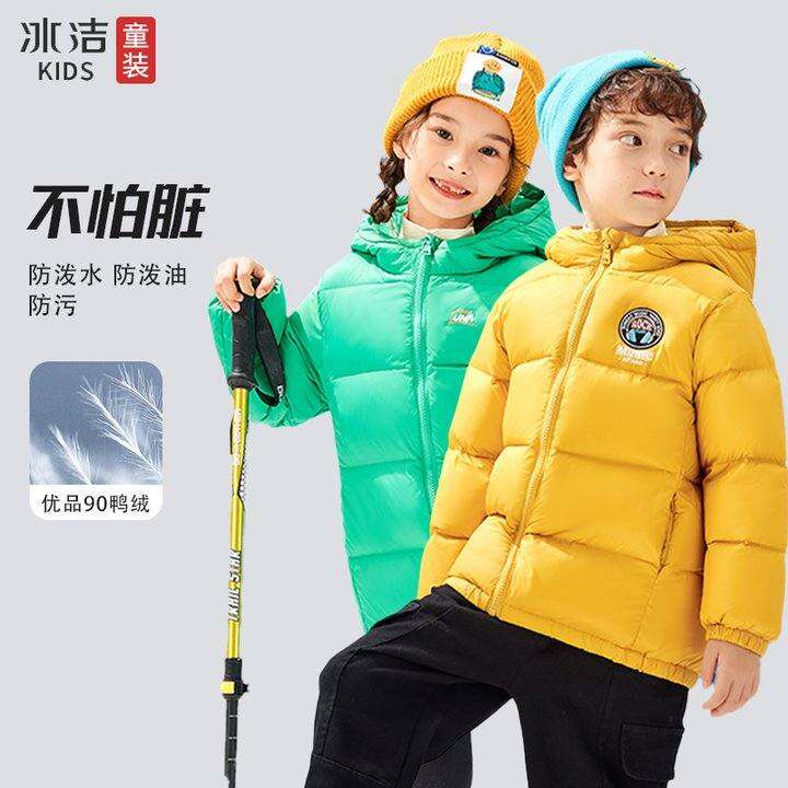 冰洁儿童羽绒服男女冬新款白鸭绒防风保暖外套连帽轻便加厚面包服