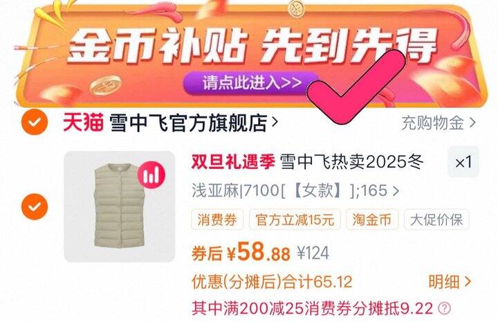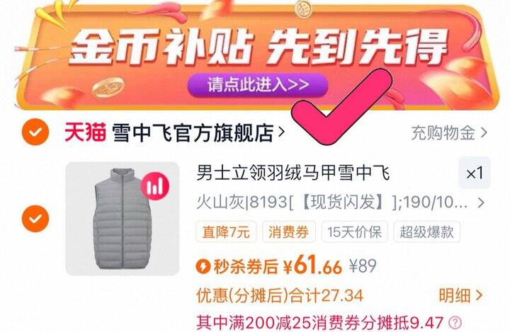 雪中飞羽绒服马甲,58起💰显瘦不臃肿