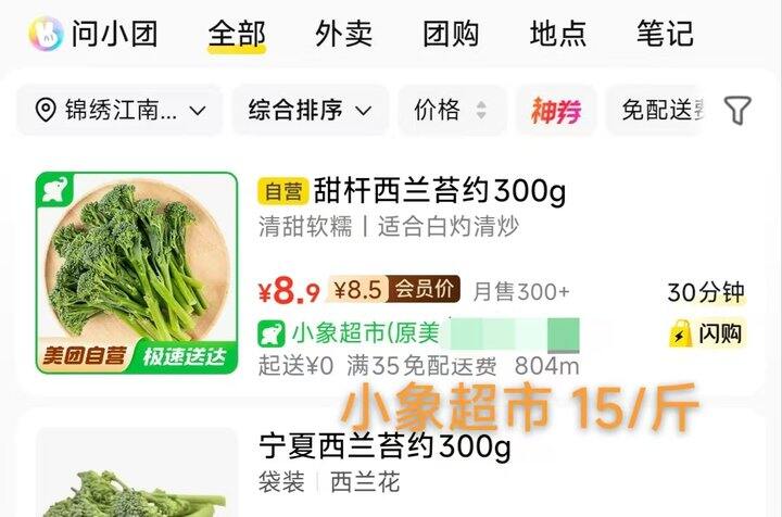 🥦之前买过山姆的,好吃,比西兰花嫩,比油菜苔清甜,脆脆的,小象超市也要15一斤,
