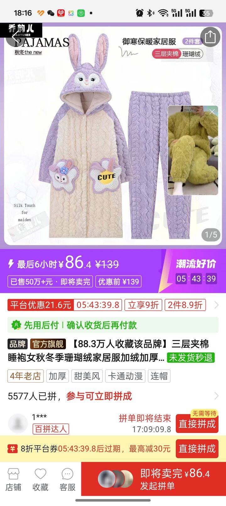 现在掌握了买珊瑚绒睡衣技巧,还想再买一套短的[馋嘴]
