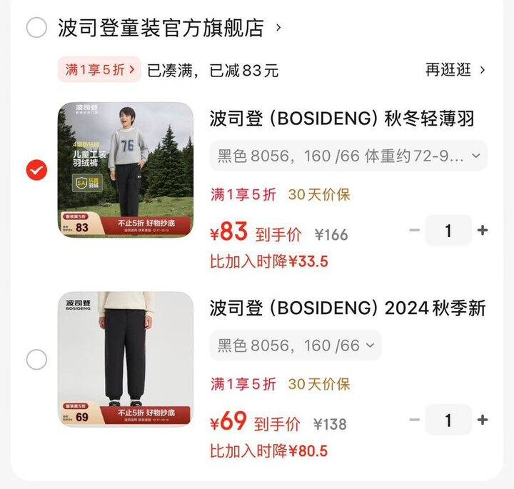 波司登儿童羽绒服5拆🈴集1⃣经典时尚羽绒裤💰69‼️