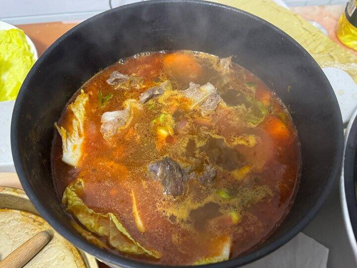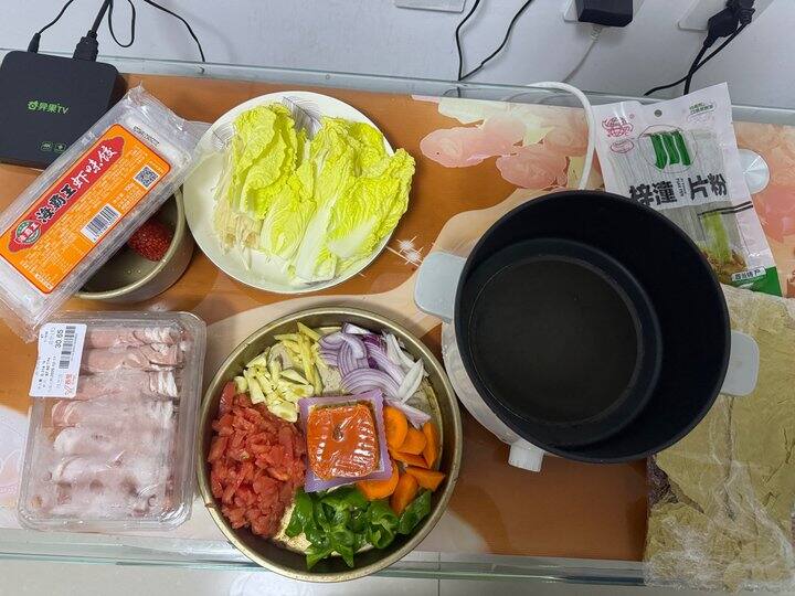 整个锅就是辣的番茄锅感觉,特别是最后,番茄味更浓了,我喝了好多汤,要不是怕嘌呤高,我可以喝光光!