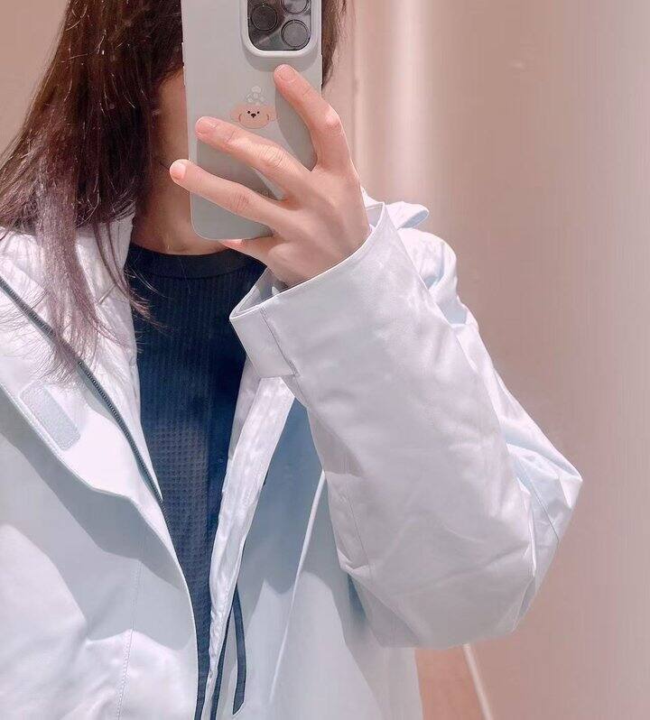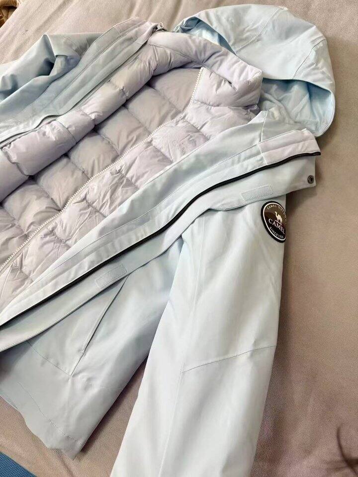 浅蓝色很推荐,低饱和度,温柔的感觉!!我是推荐大家买鹅绒的,鹅绒内胆+冲锋衣外套,很实用,能穿好多年的好衣服!!