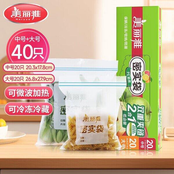 拍2件💰19.8,可更换组合,美丽雅食品级加厚自封袋中小号组合70只https://u.jd.com/AD8hZd0