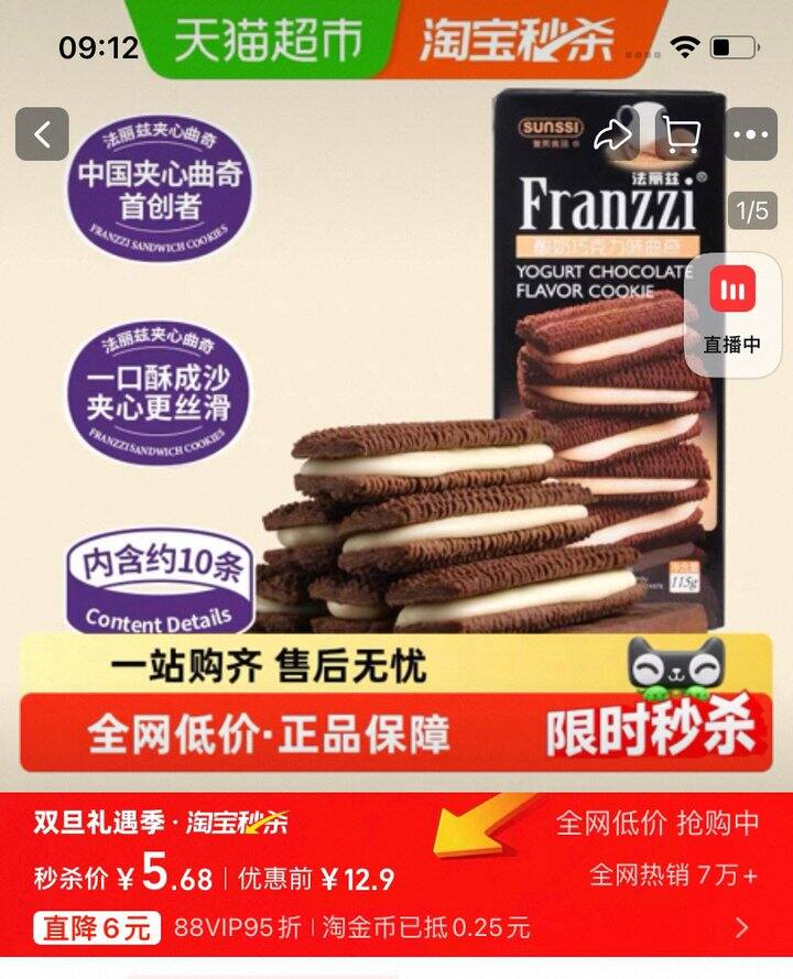 法丽兹酸奶巧克力曲奇115g➽6.5元