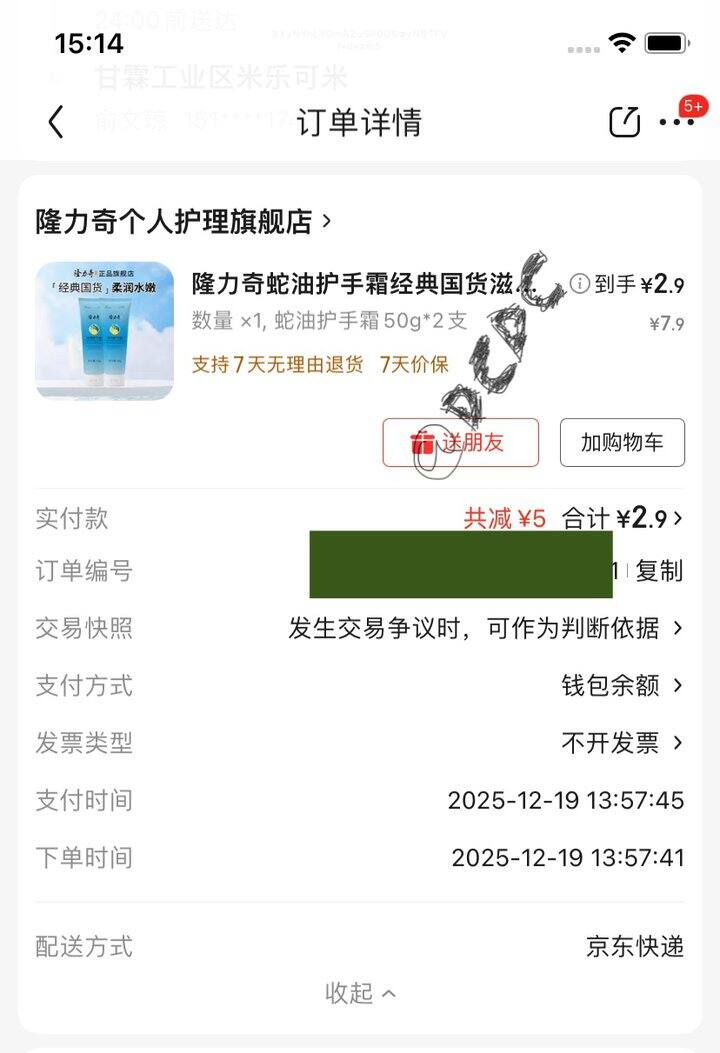 隆力奇蛇油护手霜50g*2只➽2.9元「JD」