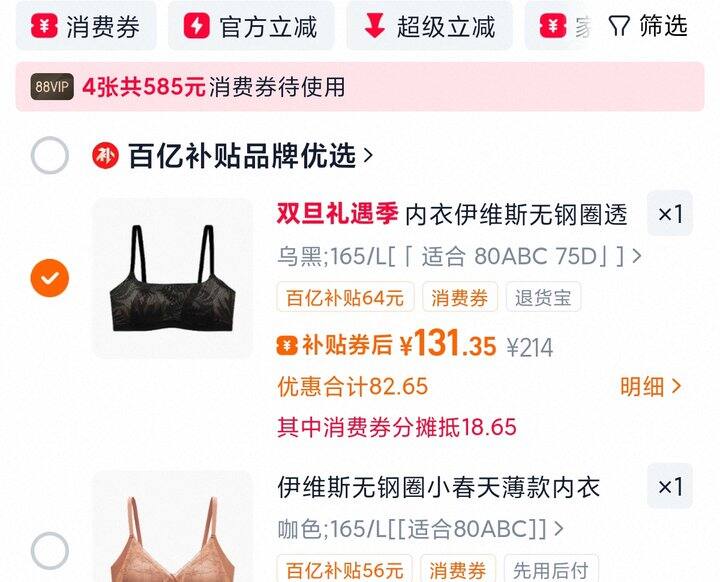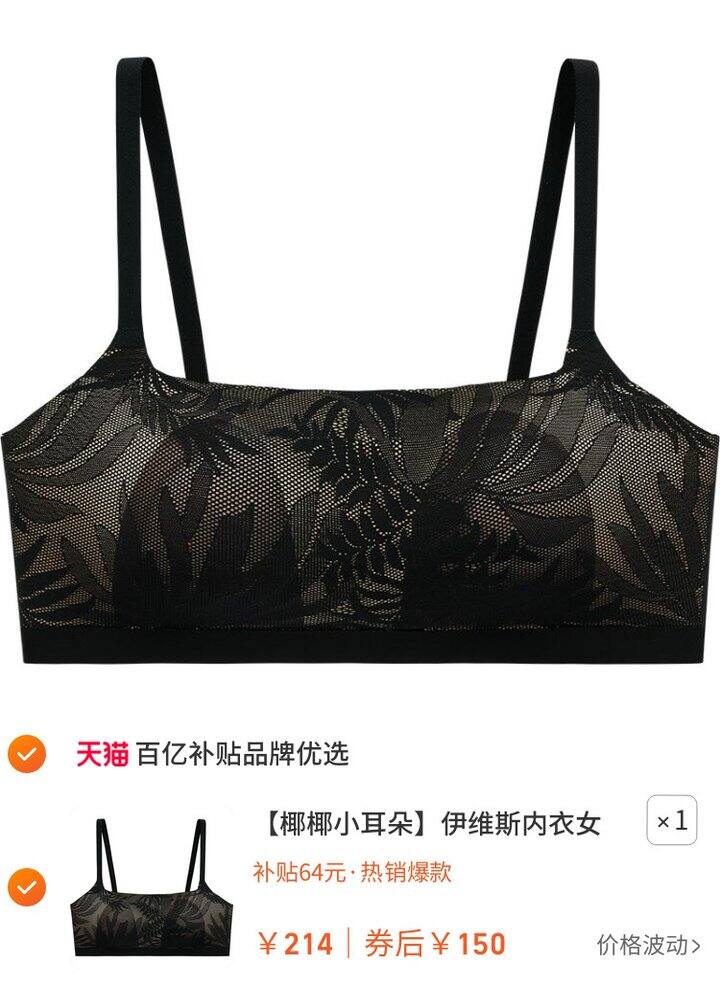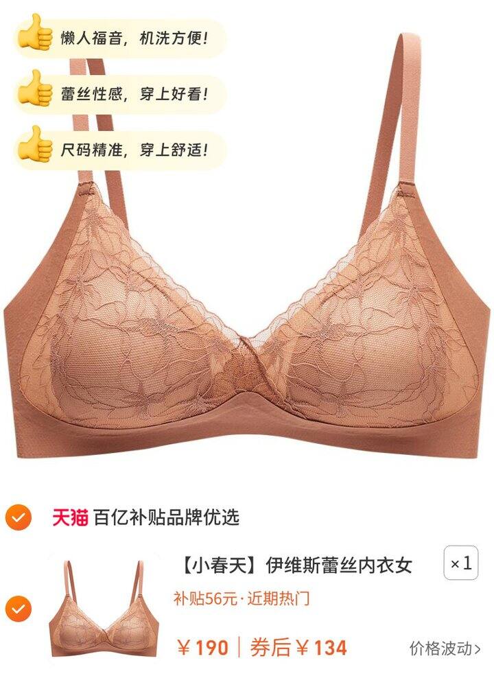 1、【小春天内衣】伊维斯无钢圈空气薄杯文胸女https://m.tb.cn/h.7eC0PGb弹13.4礼金,直接加购1