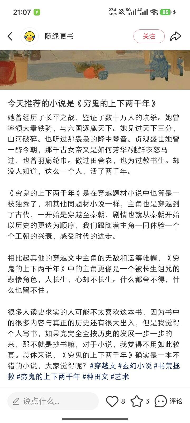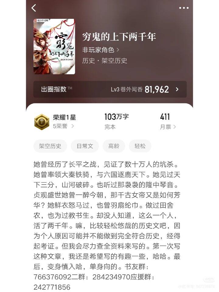 - 以长生视角串联大历史,情感落点在孤独与理想,口碑高,起点收藏超30万,已出版实体书。