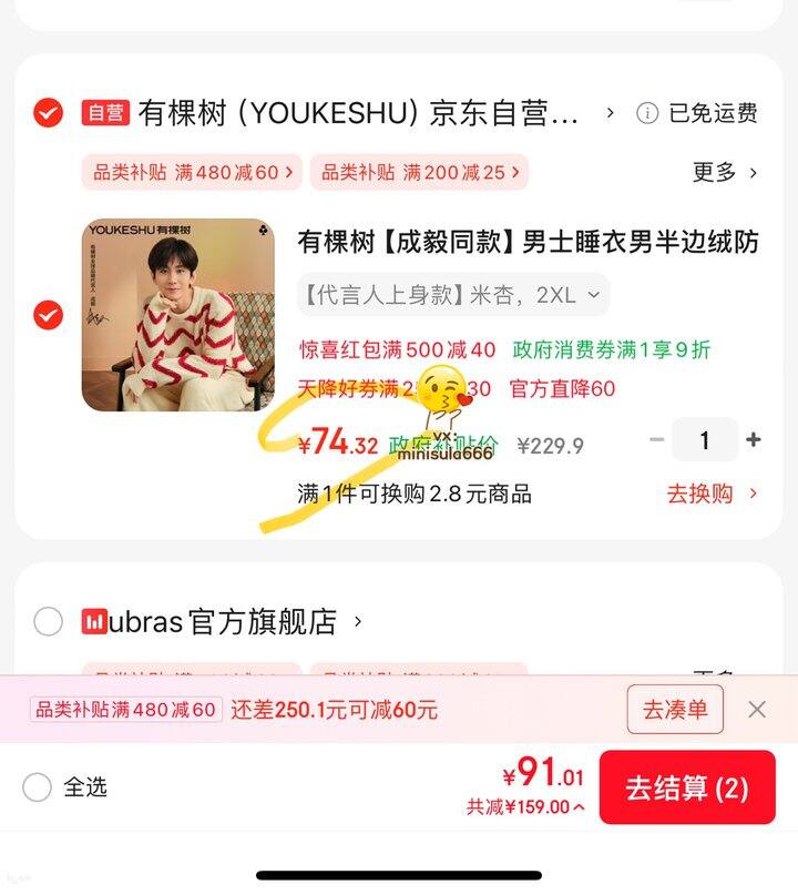 1,有棵树男士睡衣男半边绒防螨秋冬