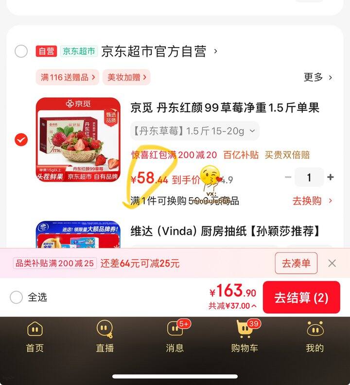 1,京觅 丹东红颜99草莓净重1.5斤单果15克起