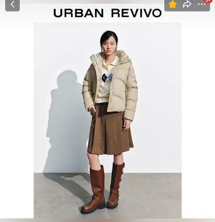 【京东】UR2025冬季新款女装休闲简约立领连帽绗缝羽绒服UYY150059 卡其 S