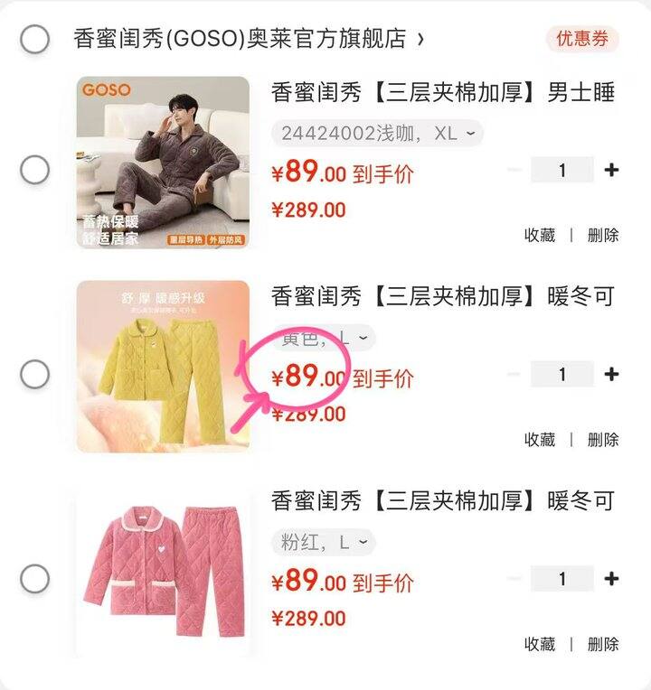 香蜜闺秀三层夹棉加厚睡衣 💰89