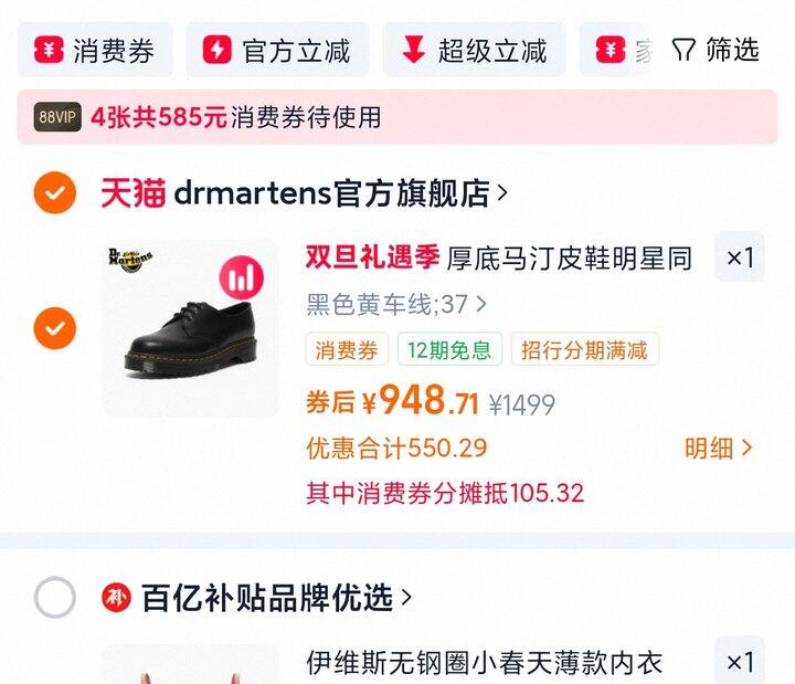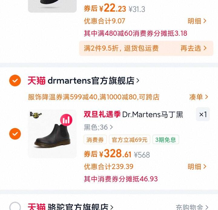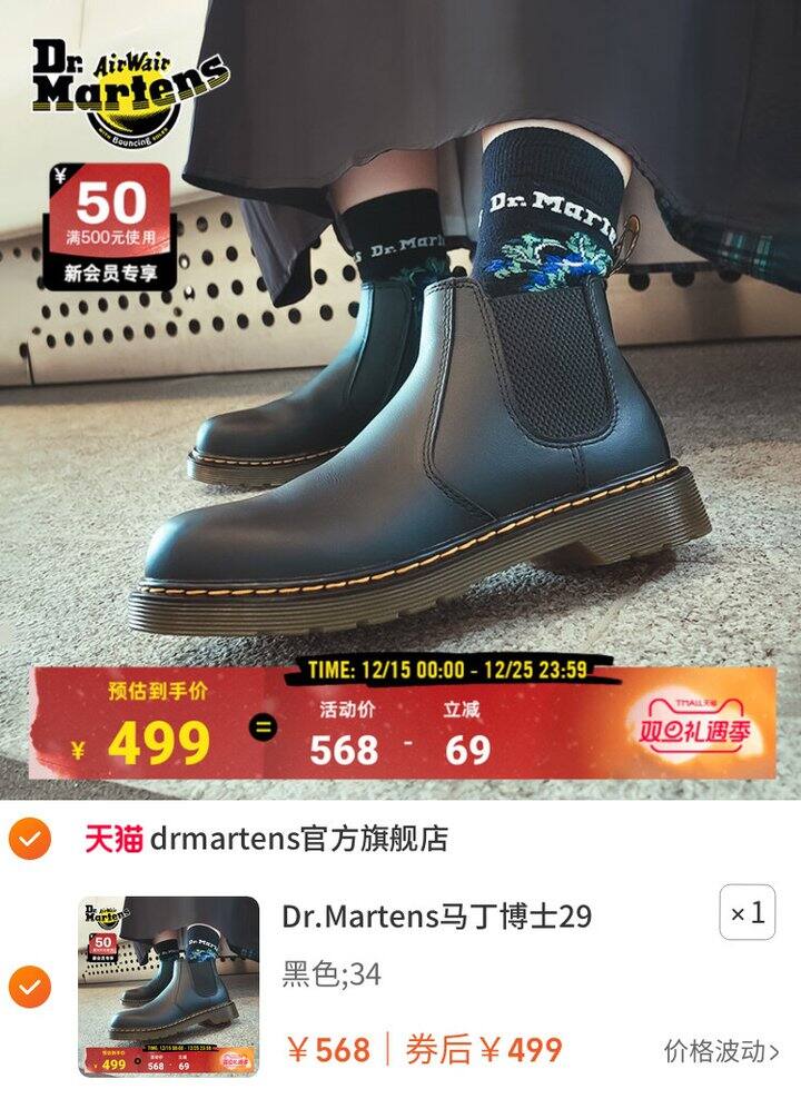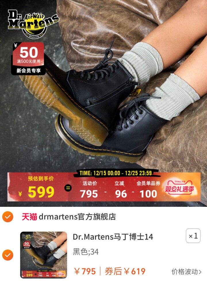 1、Dr.Martens马丁博士2976 Y女秋冬舒适百搭入门软皮https://m.tb.cn/h.73sdnC5弹29.99礼金,淘金币页面加购抵扣15