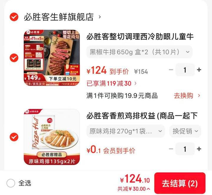 【124】必胜客 黑椒牛排礼盒 1.3kg/10片