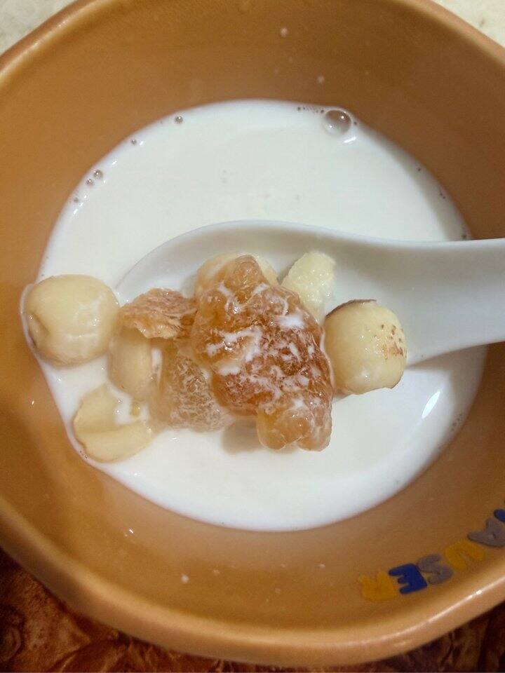 桃胶提前泡发开,用隔水炖煮的,还原80%的口感吧,至少很健康。冬天喝一杯暖暖的。