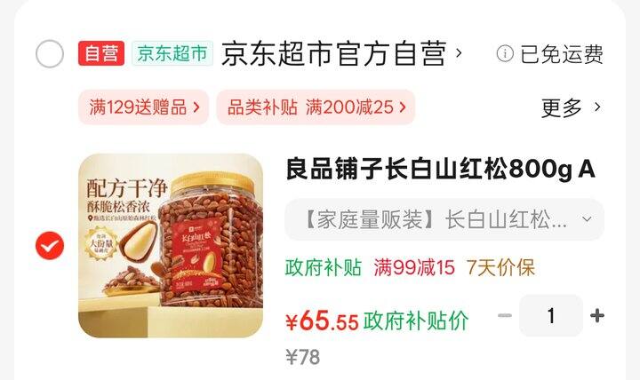 自营良品铺子 长白山红松子 800g/罐