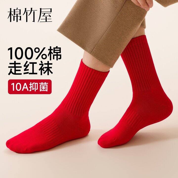 棉竹屋红袜子红色纯棉本命年