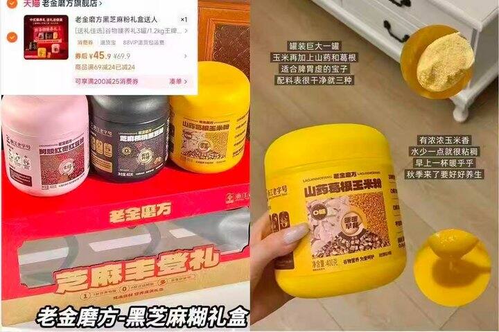 【𝟒𝟓.𝟗💰】老金磨方黑芝糊麻礼盒𝟒𝟎𝟎𝐠*𝟑桶装