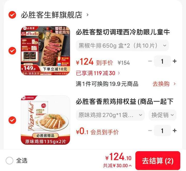 必胜客 黑椒牛排礼盒 1.3kg/10片