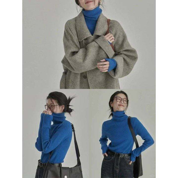 克莱因蓝高领针织毛衣女秋冬叠穿长袖修身显瘦内搭打底衫洋气上衣