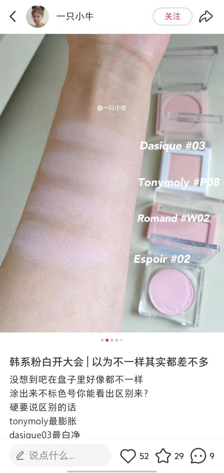 这两块我都有,我觉得这块比花知晓的雪霜珍珠更适合我,这款更偏白一点,更适合黄一白,面部嘭嘭效果更好,粉质也更细腻,好价回购一块