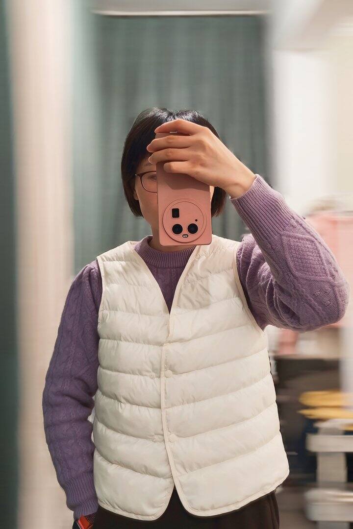 早上感觉好冷,追加了一件鹅绒背心,淘宝130+。