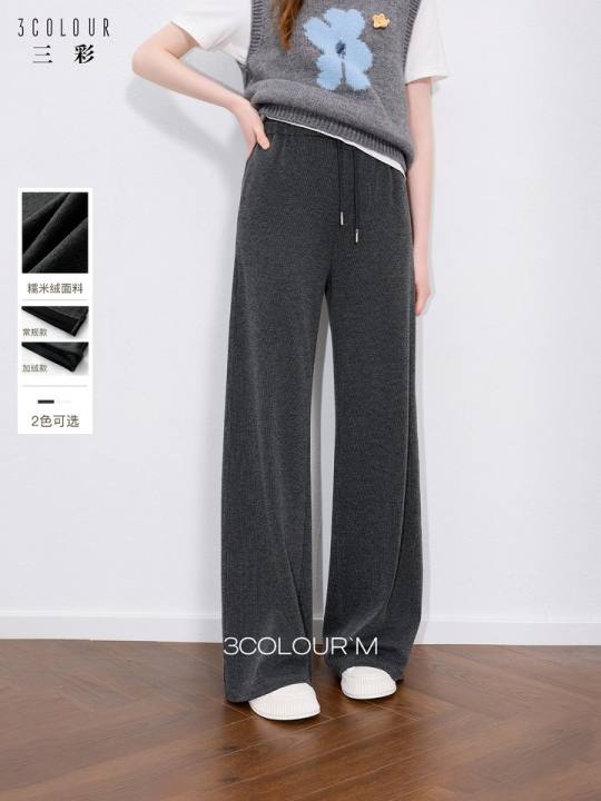 【加绒加厚】三彩2025秋冬季新款高腰休闲长裤直筒阔腿卫裤女M